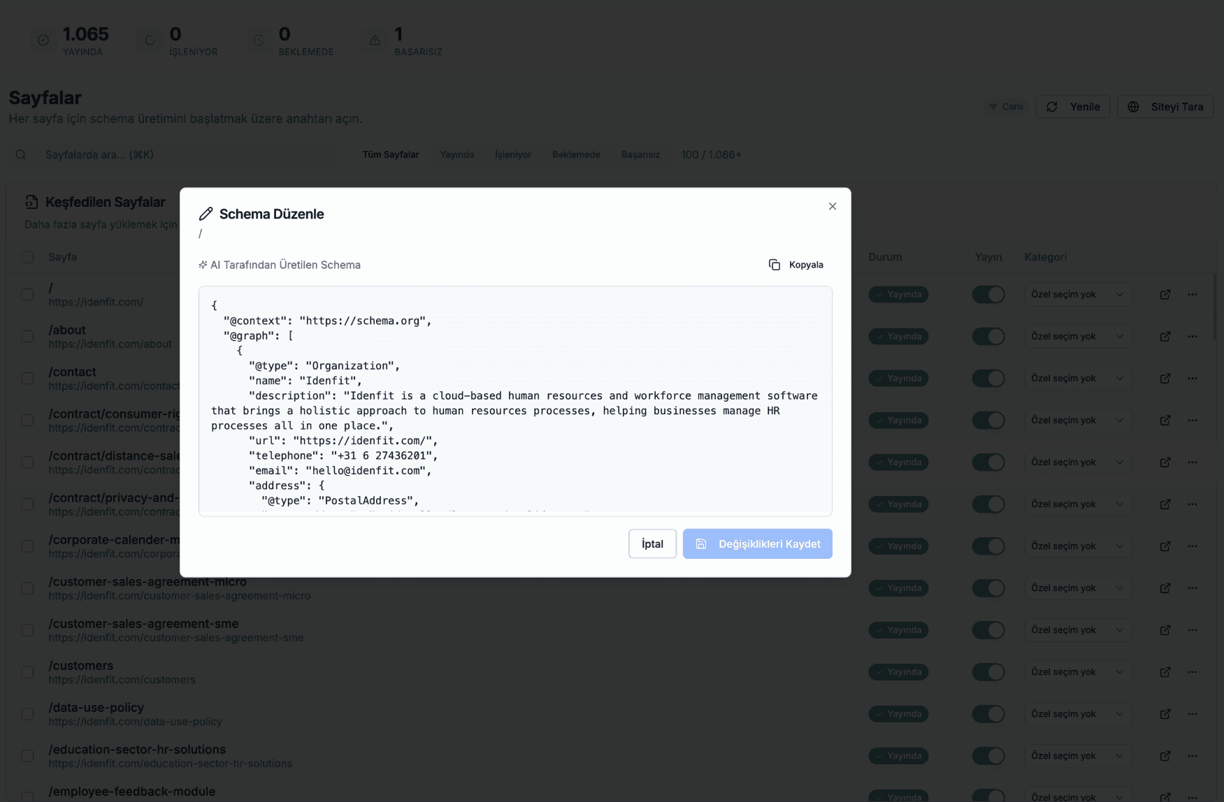 When the AI generator produces a new schema for a page, it's deployed through your CDN integration automatically. Your site picks it up without a redeploy. Your team sees the task move to Done. Your scores update in the next scan.